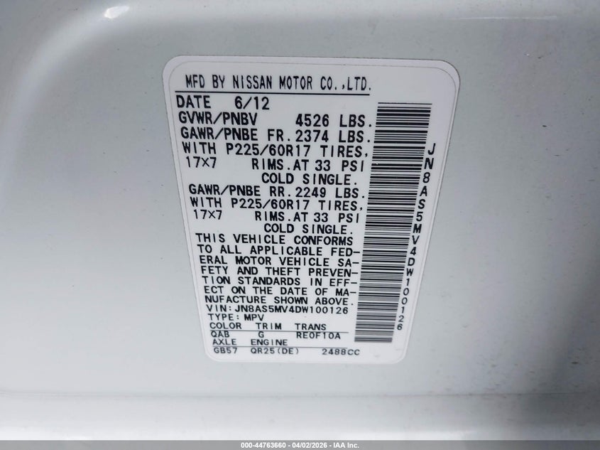 • JN8AS5MV4DW100126