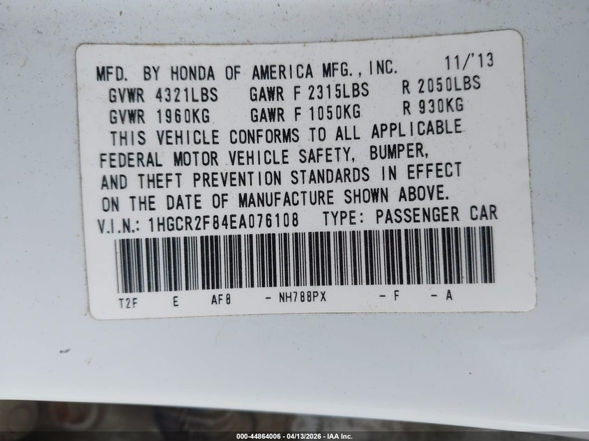• 1HGCR2F84EA076108