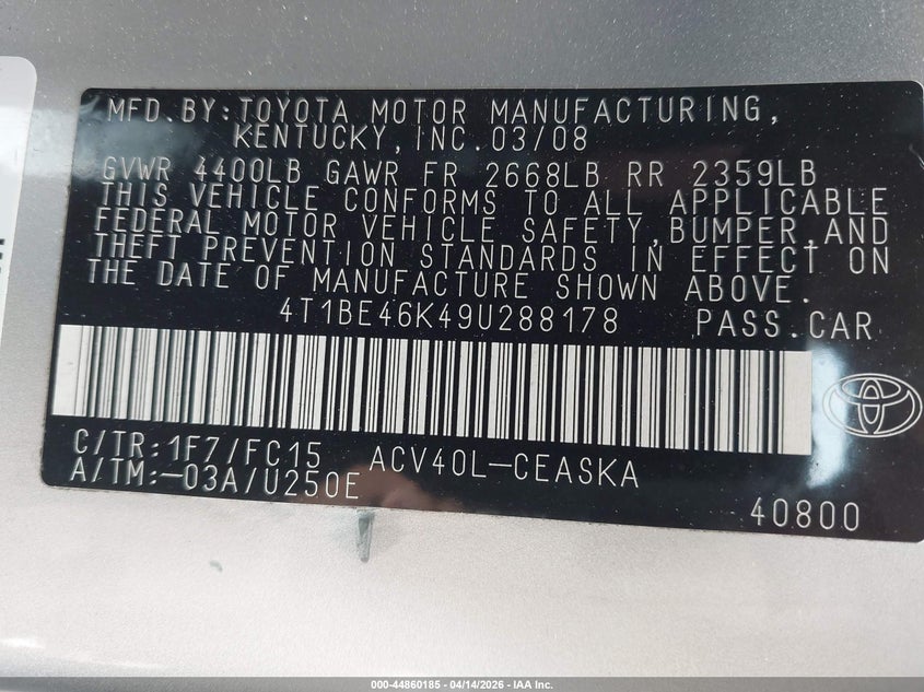 • 4T1BE46K49U288178