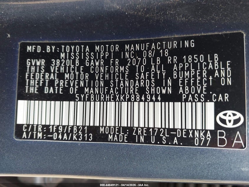 • 5YFBURHEXKP884944