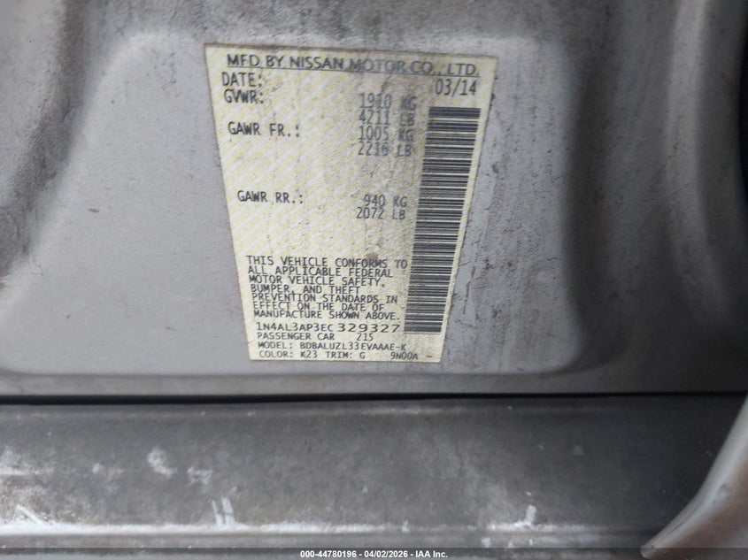 • 1N4AL3AP3EC329327