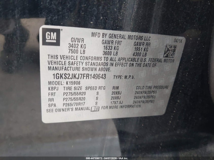 • 1GKS2JKJ7FR149643