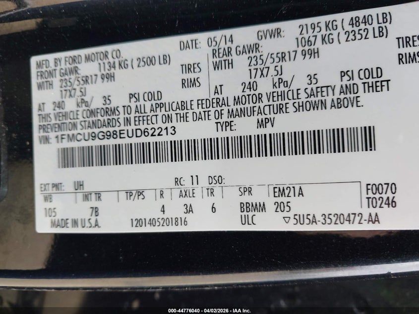 • 1FMCU9G98EUD62213