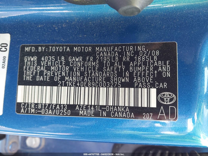 • 2T1KE40E89C003275