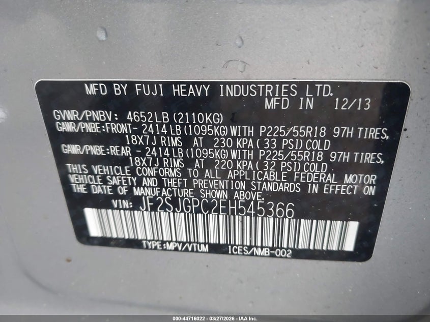 • JF2SJGPC2EH545366