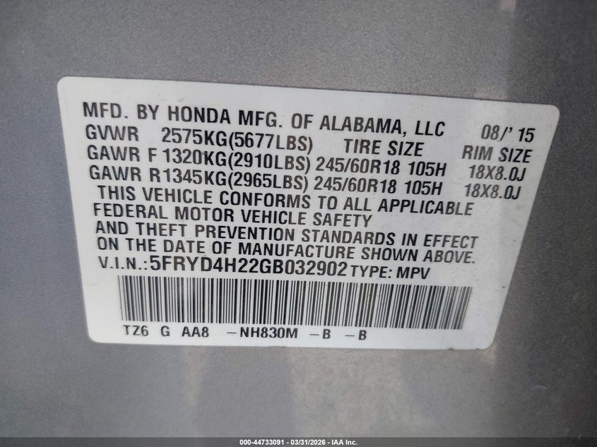 • 5FRYD4H22GB032902