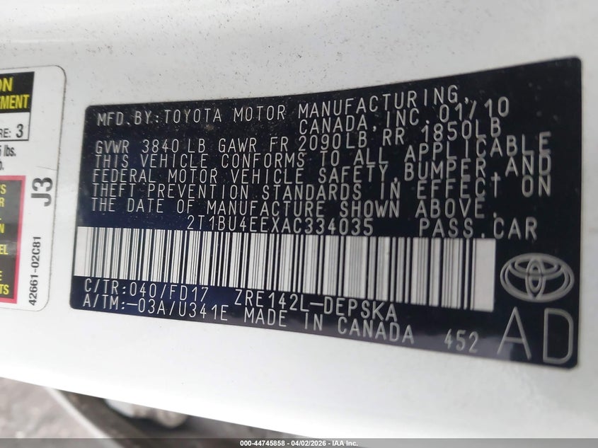 • 2T1BU4EEXAC334035