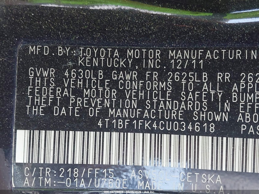 • 4T1BF1FK4CU034618