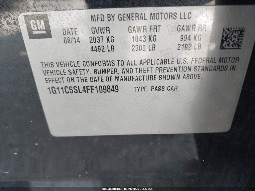 2015 CHEVROLET MALIBU 1LT for Sale in Elkton, MD