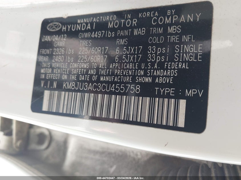 • KM8JU3AC3CU455758