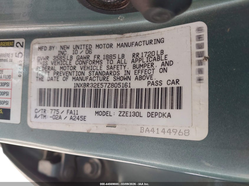 • 1NXBR32E57Z805161