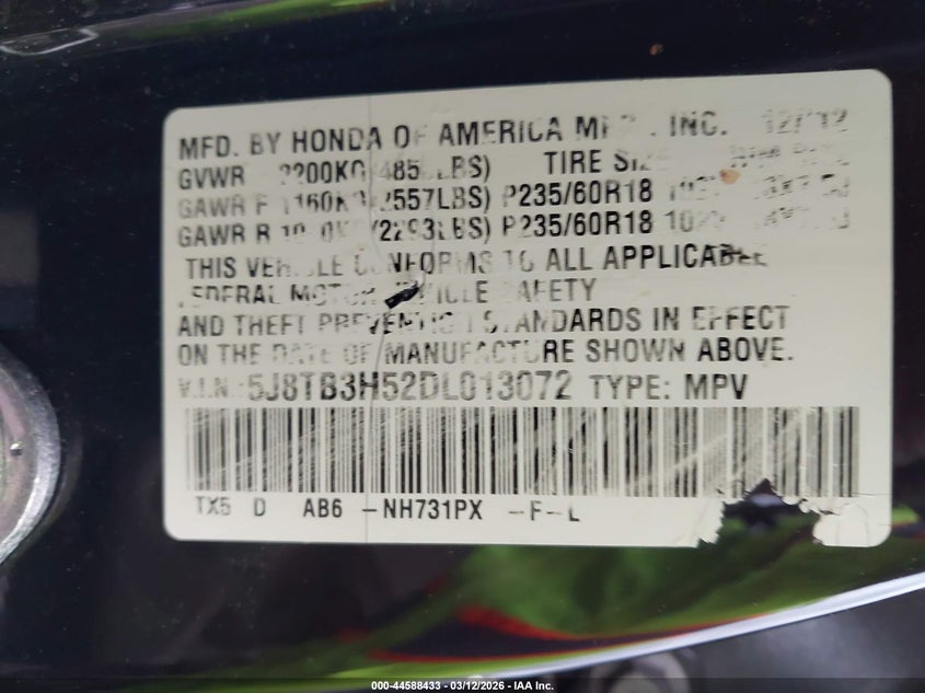 • 5J8TB3H52DL013072