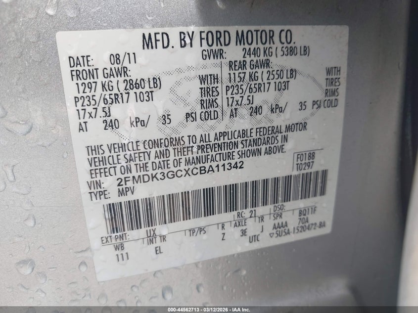 • 2FMDK3GCXCBA11342