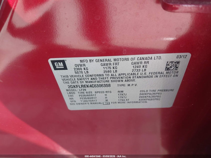 • 2GKFLREK4C6306358