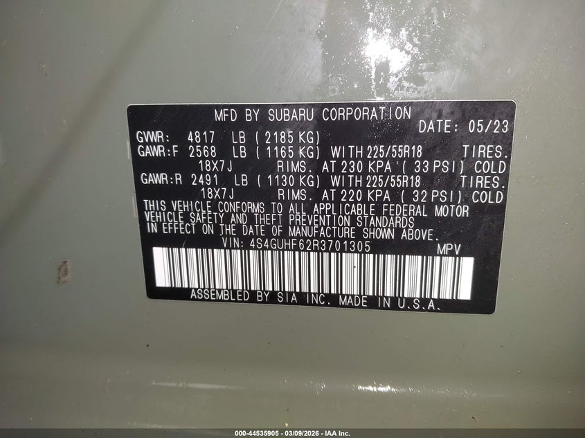 • 4S4GUHF62R3701305