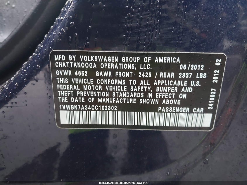 • 1VWBN7A34CC102302
