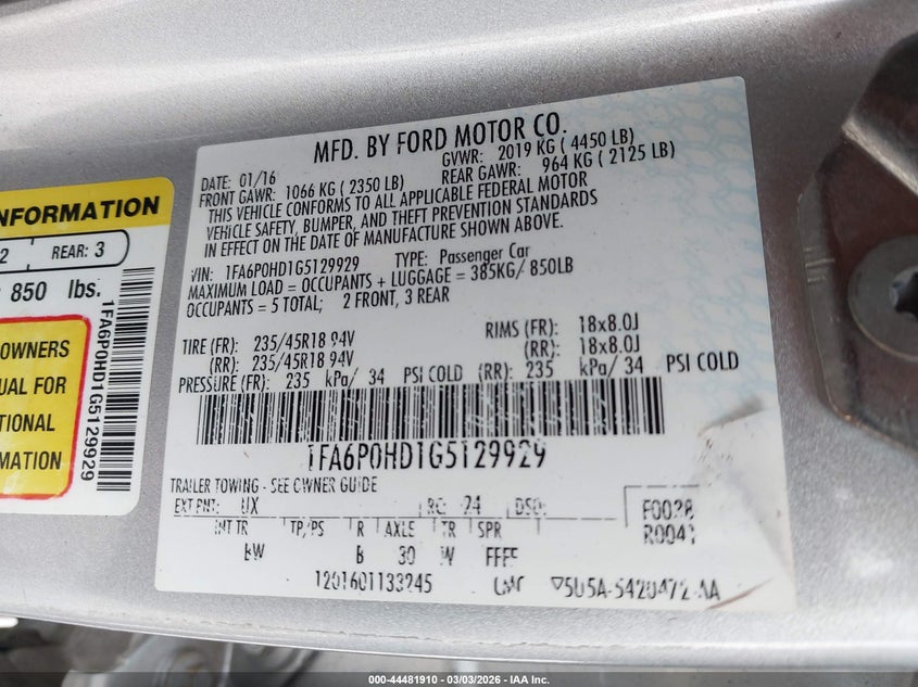 • 1FA6P0HD1G5129929