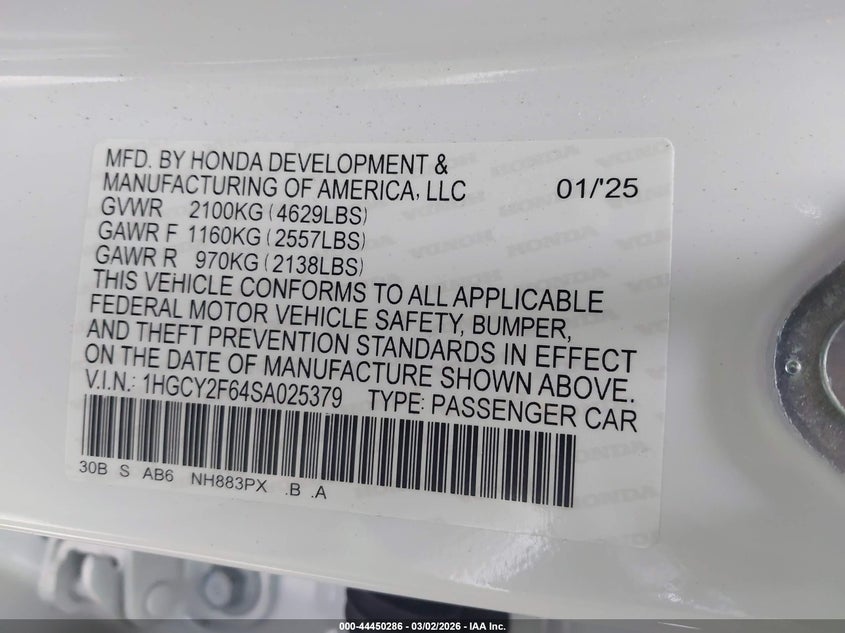 • 1HGCY2F64SA025379