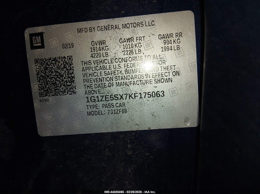 • 1G1ZE5SX7KF175063