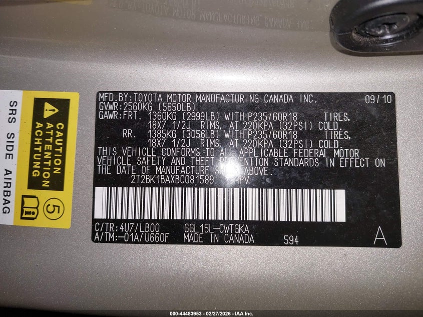 • 2T2BK1BAXBC081589