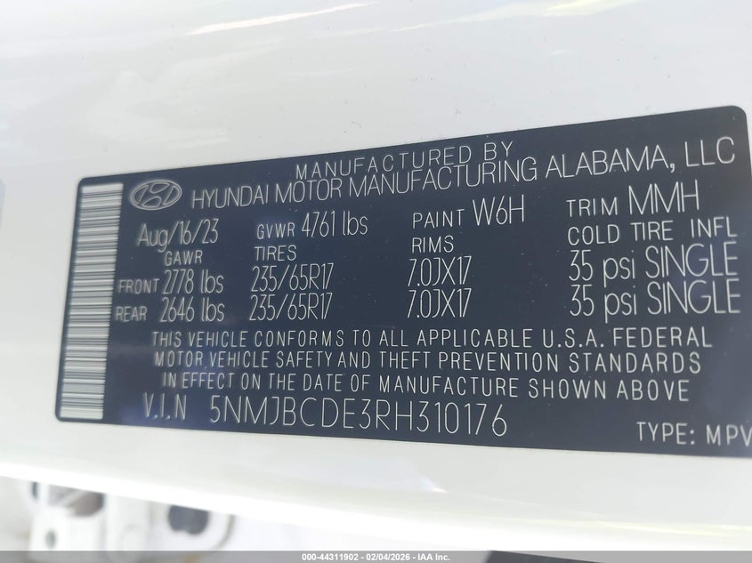 • 5NMJBCDE3RH310176