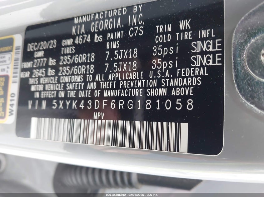 • 5XYK43DF6RG181058