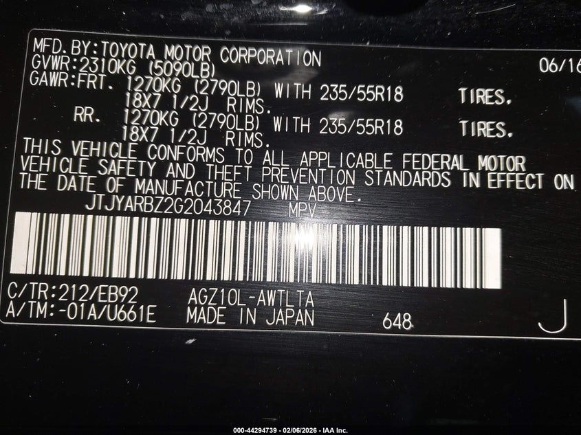 • JTJYARBZ2G2043847