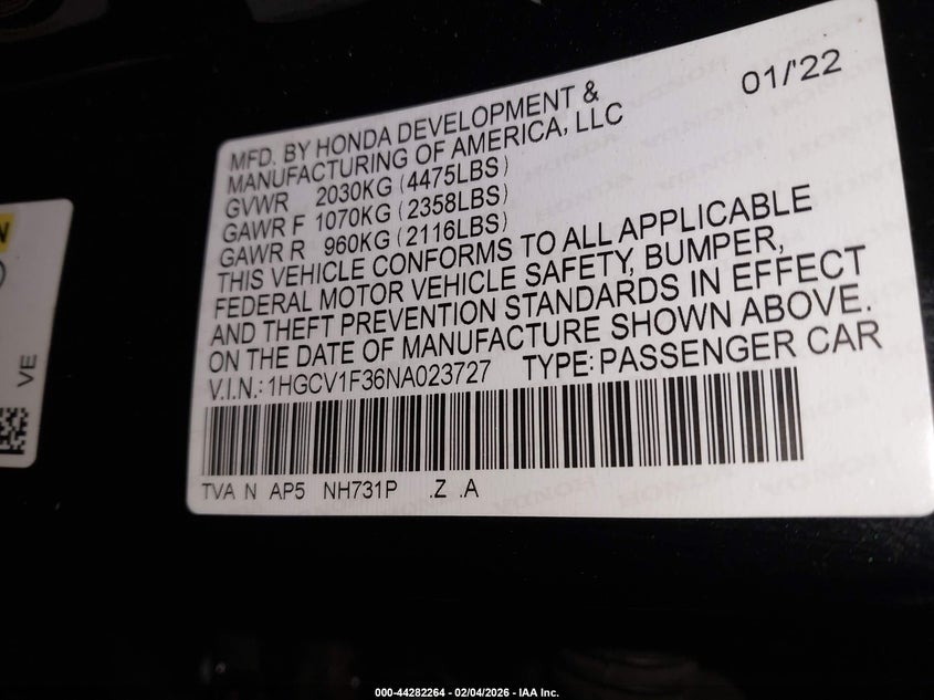 • 1HGCV1F36NA023727