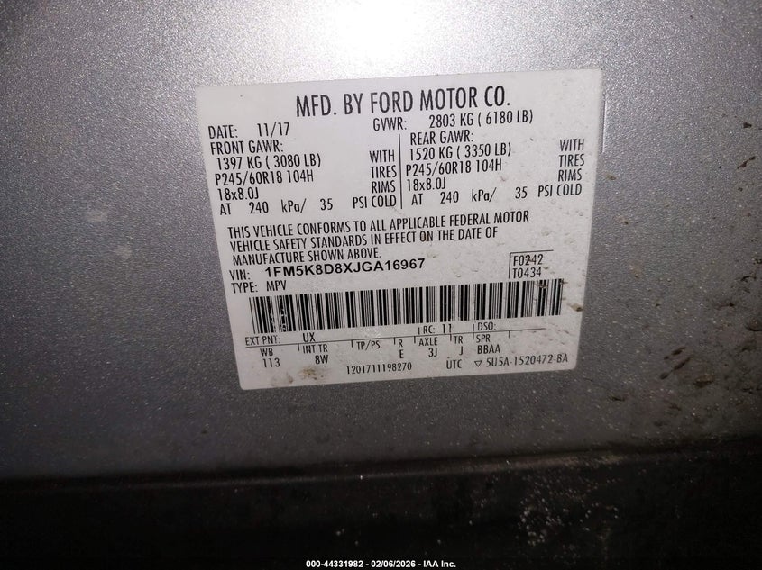 • 1FM5K8D8XJGA16967