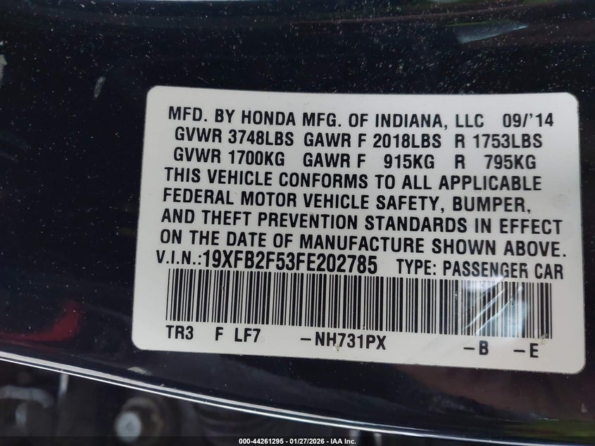• 19XFB2F53FE202785