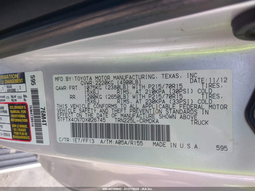 • 5TFTX4CN7DX026745