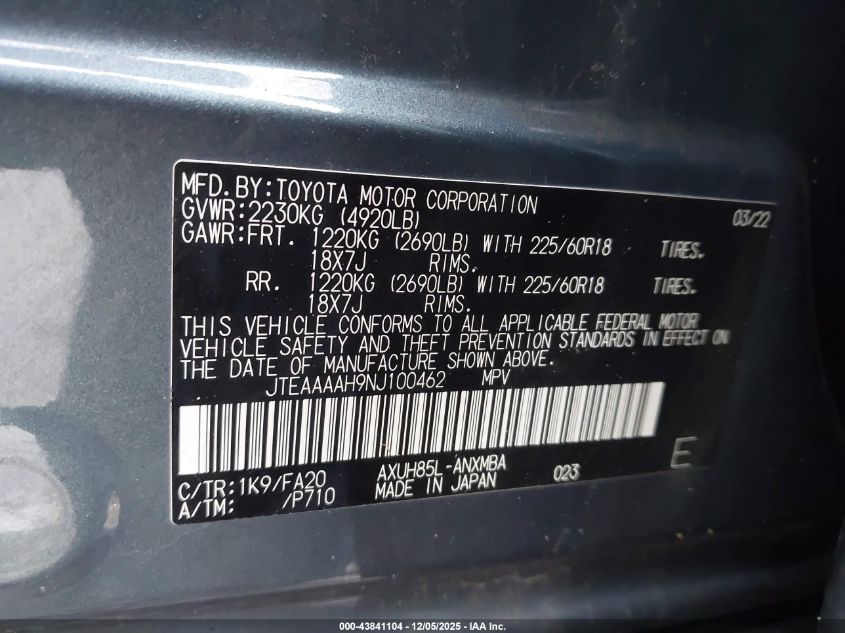 • JTEAAAAH9NJ100462
