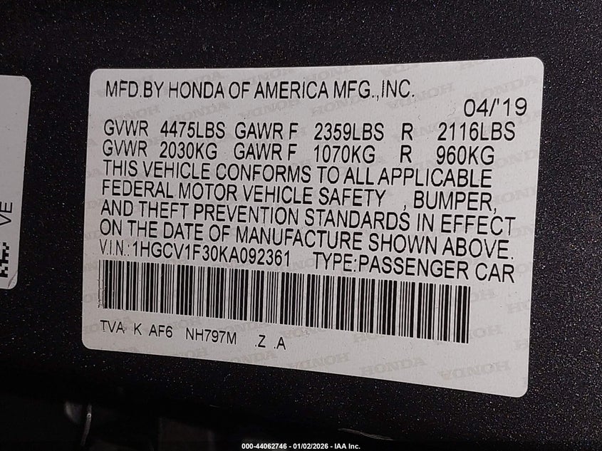 • 1HGCV1F30KA092361