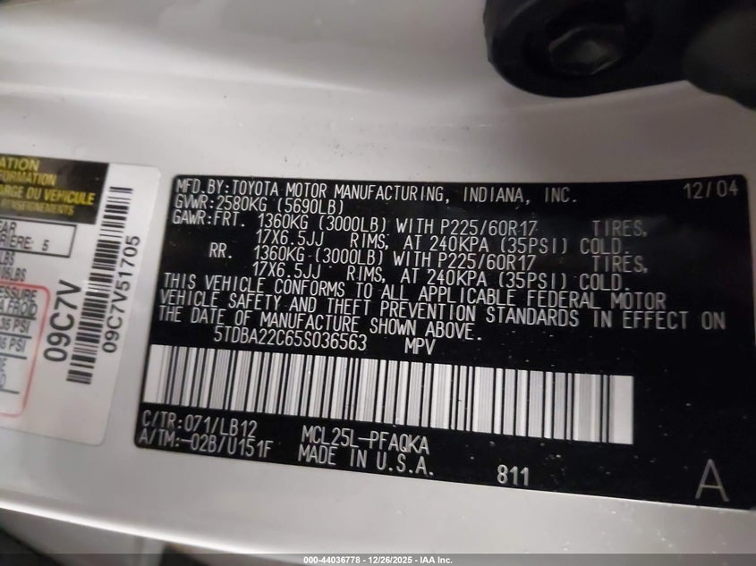 • 5TDBA22C65S036563