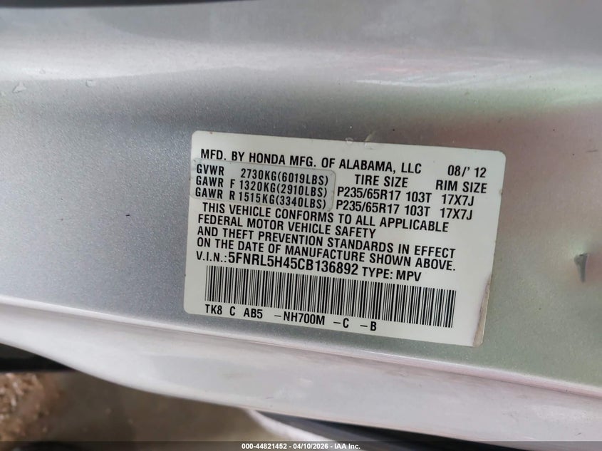 • 5FNRL5H45CB136892
