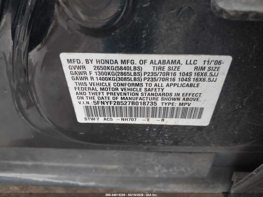 • 5FNYF28527B018735