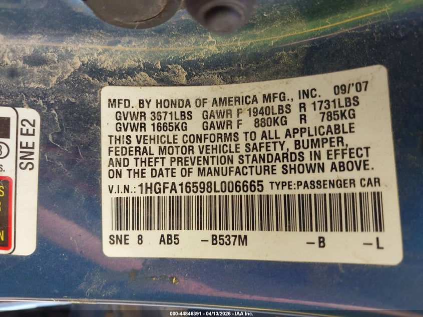 • 1HGFA16598L006665