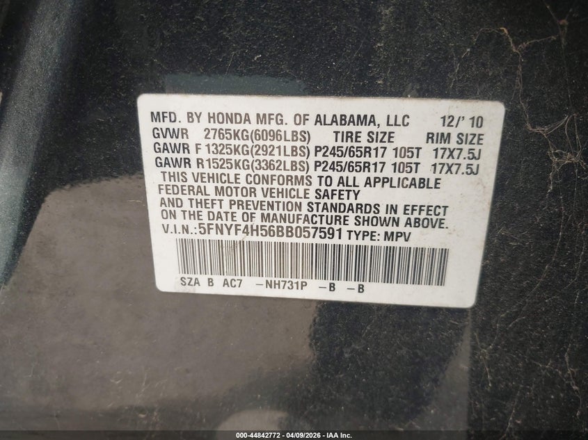 • 5FNYF4H56BB057591