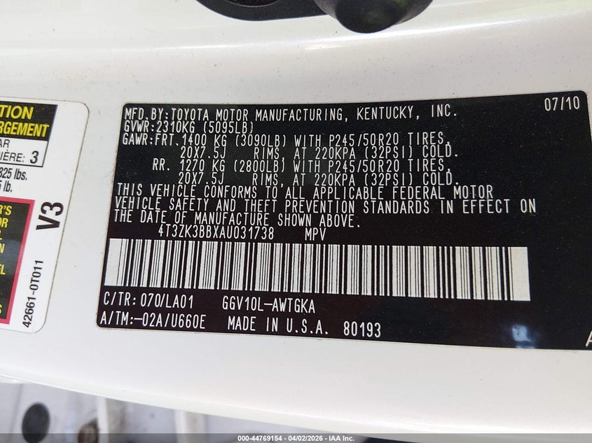 • 4T3ZK3BBXAU031738