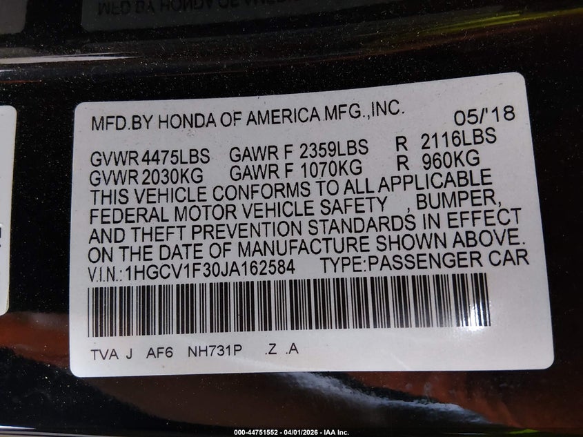 • 1HGCV1F30JA162584