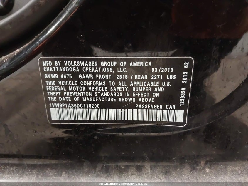 • 1VWBP7A36DC116200