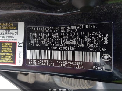 • 4T1BD1FK2DU083291
