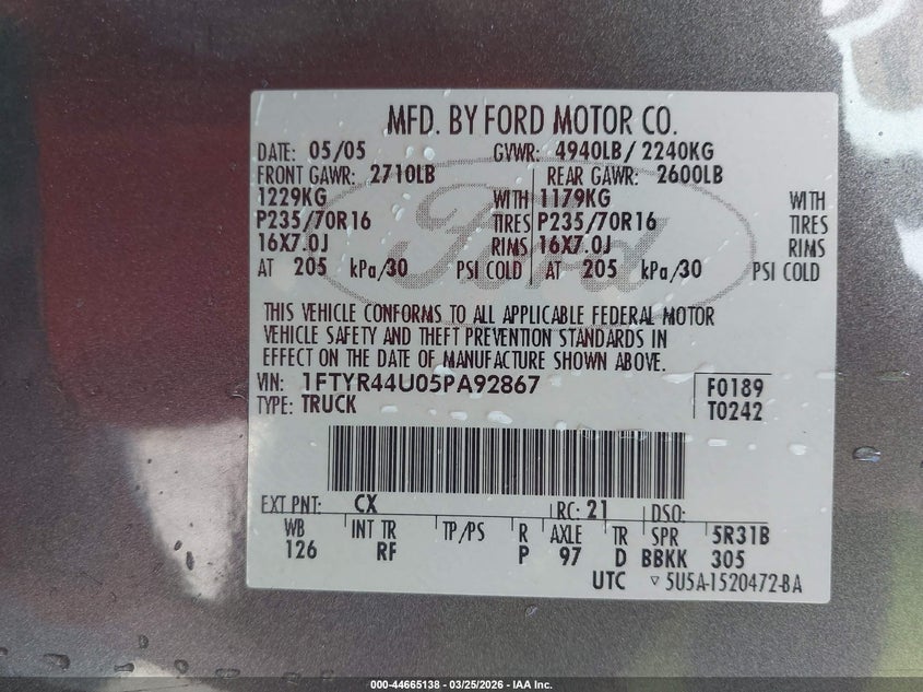 • 1FTYR44U05PA92867