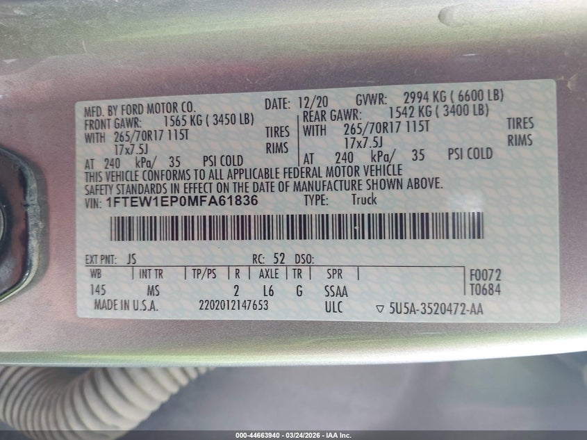 • 1FTEW1EP0MFA61836