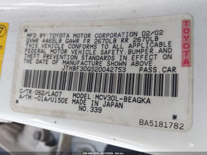 • JTHBF30G520042753