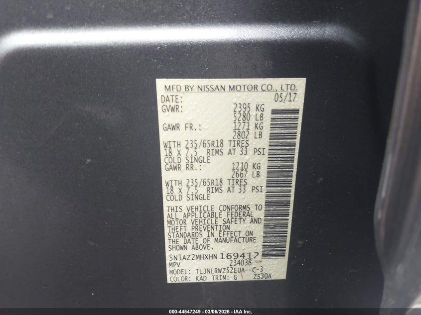 • 5N1AZ2MHXHN169412