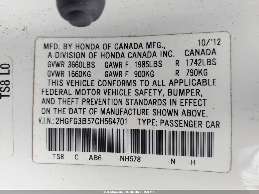 • 2HGFG3B57CH564701