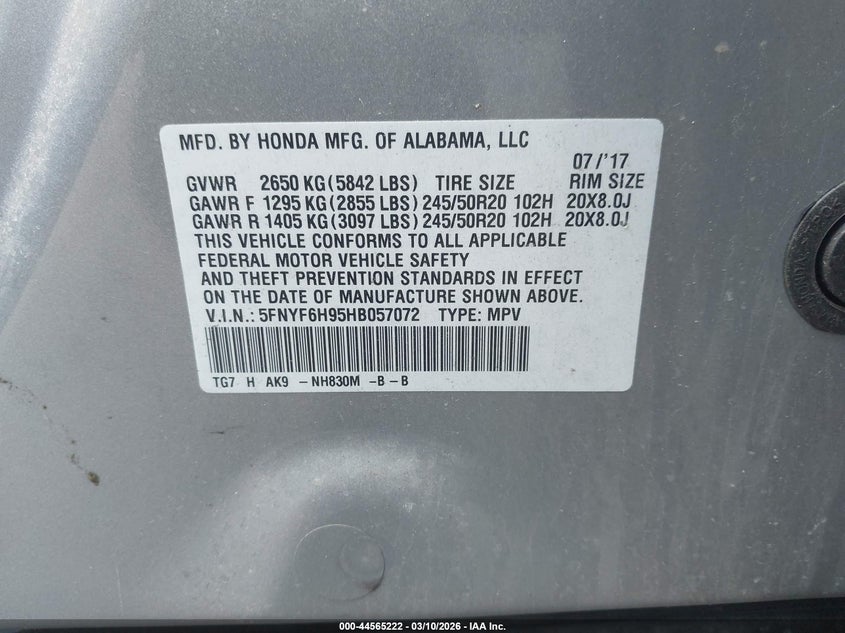 • 5FNYF6H95HB057072