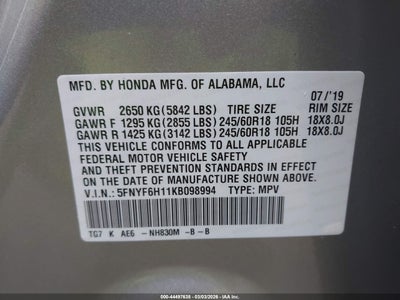 • 5FNYF6H11KB098994