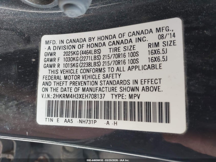 • 2HKRM4H3XEH708137